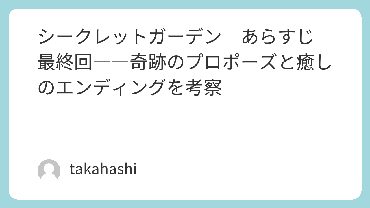 最終回の余韻――奇跡のひとときは、登場人物だけでなく、視聴した私たち自身に優しく寄り添ってくれます。シークレットガーデンは、幸福や愛の本質を問い直す素敵なヒントが満載のドラマ。これまでの困難や葛藤も含め、前向きに歩み続けることへの勇気と希望を分かち合えたなら、幸いです