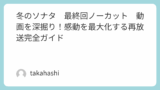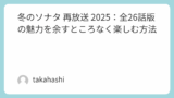 さらにU-NEXT、LeminoやPrime Videoなど、ネット配信勢も揃い踏みでいつでも全話視聴できる贅沢な状況になっています。忙しい人でも見逃しの心配ナシ、たっぷり名作を堪能できますね。
