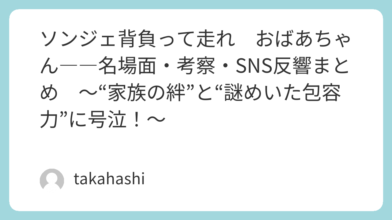 ソンジェ背負って走れ おばあちゃん――名場面・考察・SNS反響まとめ ~“家族の絆”と“謎めいた包容力”に号泣!~