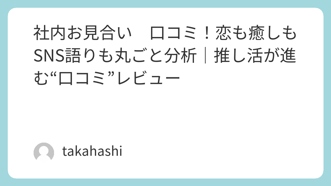 このブログでは、視聴者が「社内お見合い」を絶賛する理由を徹底的に分析!!