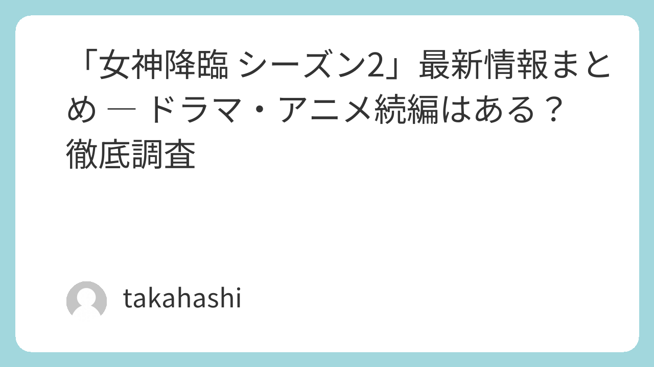この記事では、そんな『女神降臨 シーズン2』をめぐる最新の動き、キャストのコメント、アニメ続編の意味までを、わかりやすく丁寧に紹介していきます。