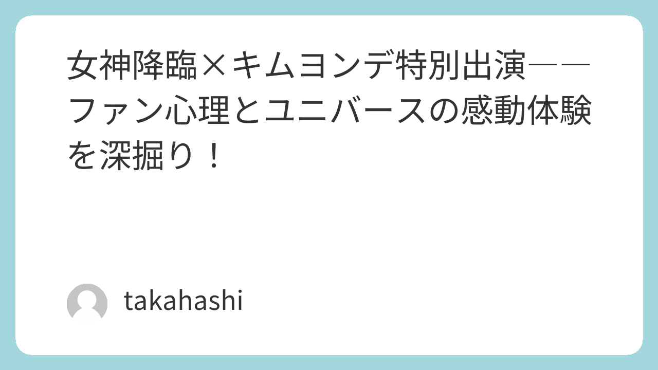 「女神降臨 キムヨンデ」のサプライズ出演は、自分の好きなキャラや作品との“心のつながり”を感じられる究極の贈りもの。