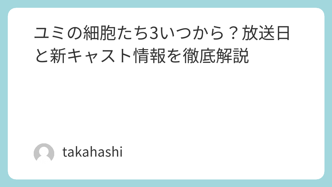 話数がコンパクトな分、一話ごとの密度や細胞たちの描写にも期待が集まっており、テンポの良さを重視した構成になると予想されます。