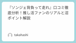 口コミ 【ソンジェ背負って走れ】を“面白くない”と感じた理由を徹底解剖! 違和感の正体と新しい楽しみ方 今回は、巷で大人気の韓国ドラマ「ソンジェ背負って走れ」を、“面白くなかった”という視点で正面から深掘りしていきます。SNSや口コミでは絶賛の嵐。でも「なんでピンとこないのは自分だけ?」と悩む人もきっと多いはず。あなたが感じた「納得いかない」「共感できない」を一緒に整理して、他にない視点や新しい楽しみ方まで紹介していきます。 2025.09.26 口コミ