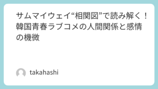 相関図 サムマイウェイ“相関図”で読み解く!韓国青春ラブコメの人間関係と感情の機微 本記事では「サムマイウェイ」の物語の進行に合わせて、主要キャスト4人を中心に、周辺キャラを含めた相関図・人間関係の変化ポイントを解説!!!。SNSの口コミも交え、ドラマファン視点で共感できる“心の動線”を徹底的に追いかけます♡ 2025.10.04 相関図